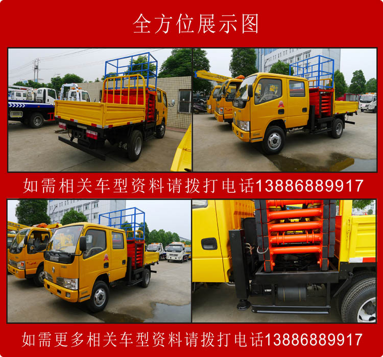 专用部分结构形式:垂直升降式;平台容纳人数:3人;液压支腿数:2个 该车是用来进行高空检查、维修、装饰、清扫等可移位作业的专用车辆;应用于电气检修、树木修剪、通讯、路灯、交警、高速公路、有线电视、修造船、建筑、园林、广告、摄影、大型企业等领域。 |